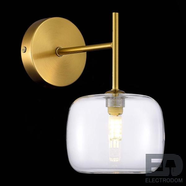 ST LUCE SL1049.301.01 Бра ST-Luce Латунь/Прозрачный G9 1*5W идеален для использования в квартирах при создании дополнительного равномерного освещения с рассеивающим эффектом. Подходит для зонирования комнат: выделения места около обеденного стола на кухне или пространства рядом с кроватью в спальне.