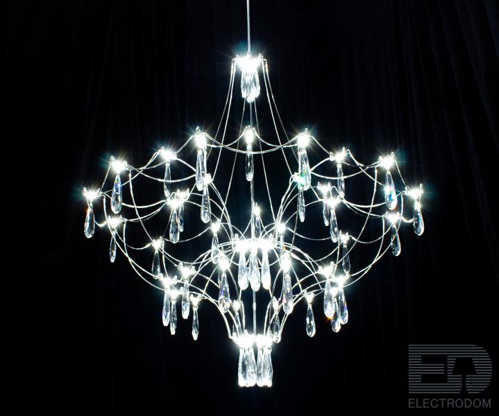 Мощный поток света позволяет использовать ее как единственный источник освещения даже для большого метража. При желании потолок можно дополнить встраиваемыми светильники, которые подчеркнут изящество и простоту люстры.