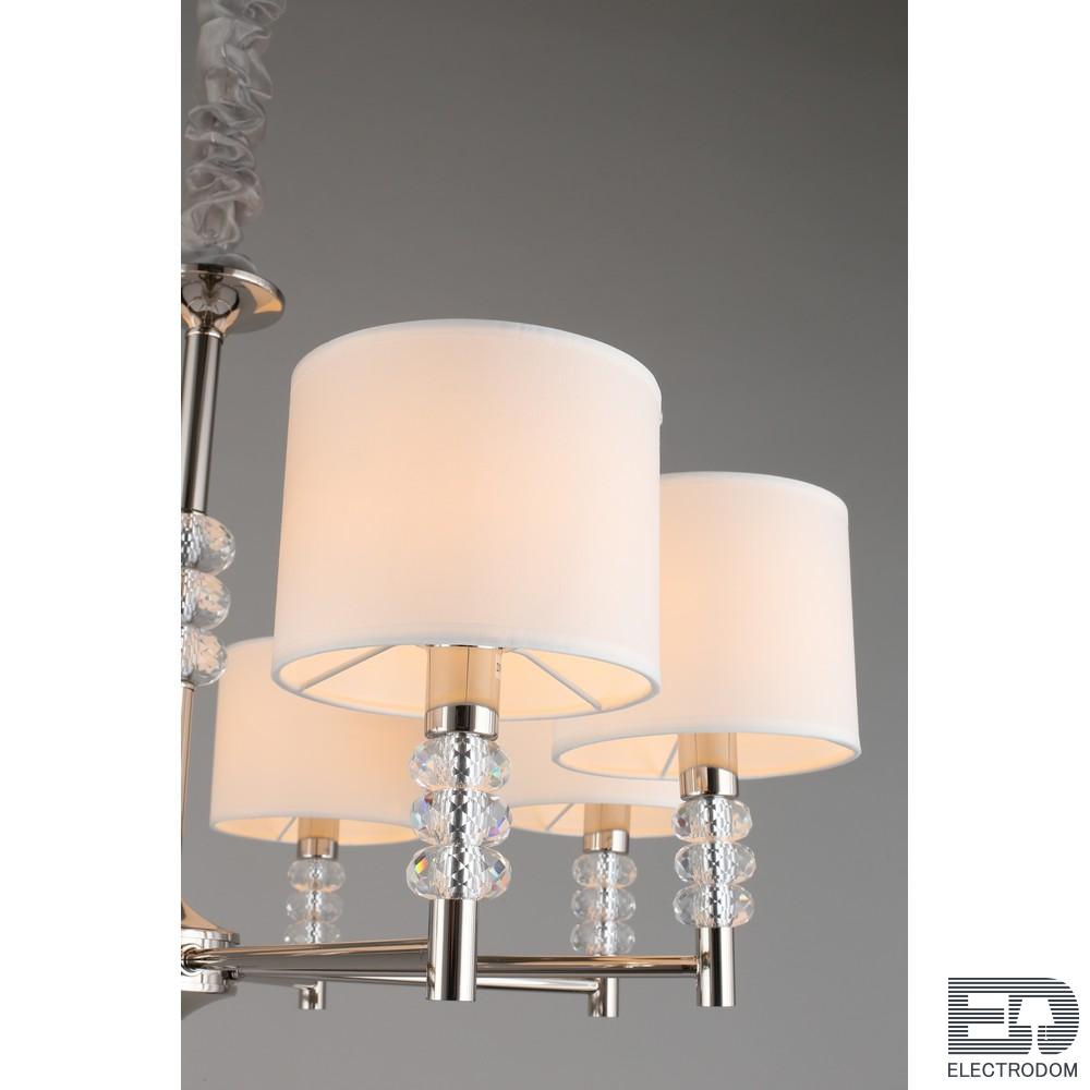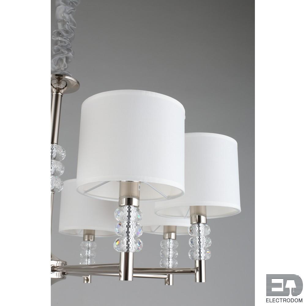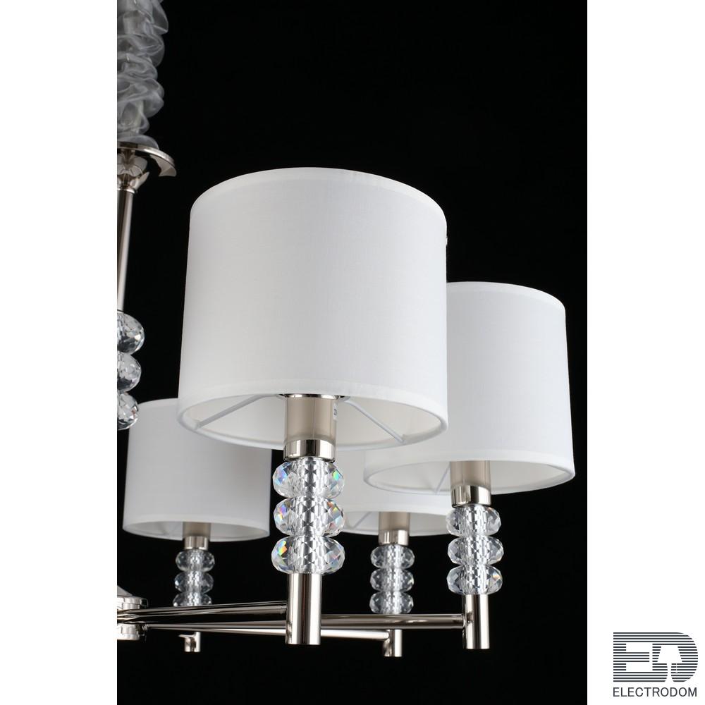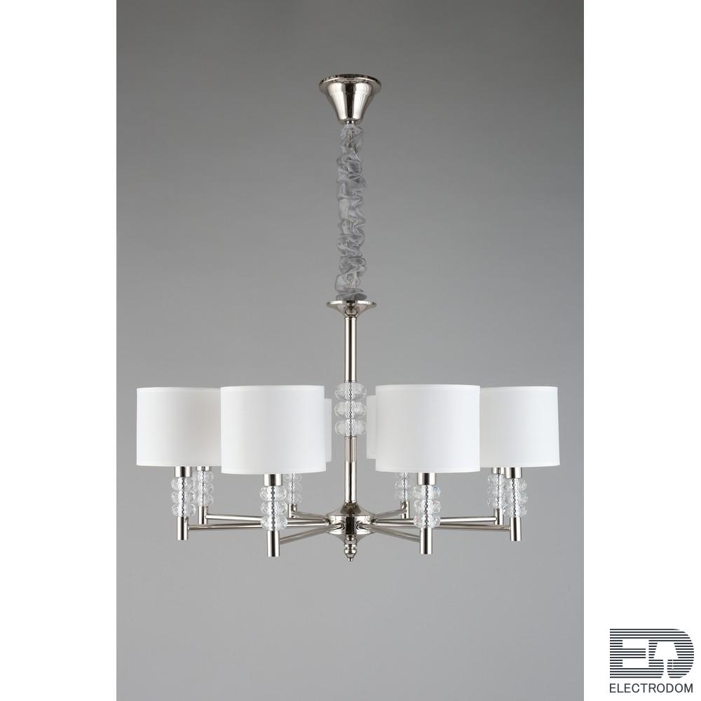 Мощный поток света позволяет использовать ее как единственный источник освещения даже для большого метража. При желании потолок можно дополнить встраиваемыми светильники, которые подчеркнут изящество и простоту люстры.