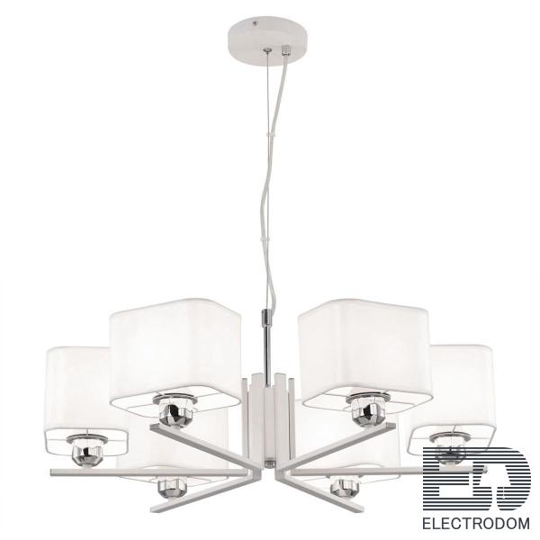 Мощный поток света позволяет использовать ее как единственный источник освещения даже для большого метража. При желании потолок можно дополнить встраиваемыми светильники, которые подчеркнут изящество и простоту люстры.