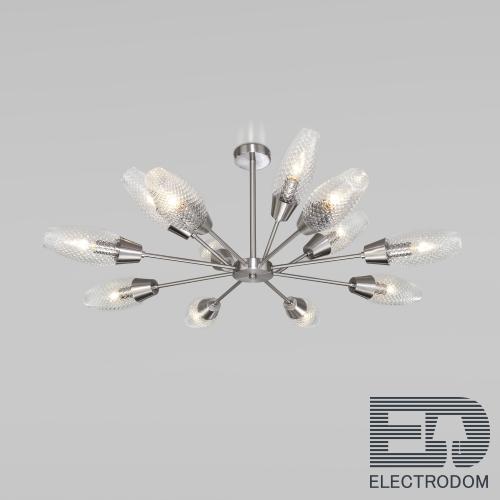 Eurosvet Потолочная люстра с плафонами 60140/12 сатин-никель – стильный светильник, который крепится без использования подвесов и цепей. Конструкция хорошо подходит для комнат с низкими потолками. Например, офисов и кухонь.