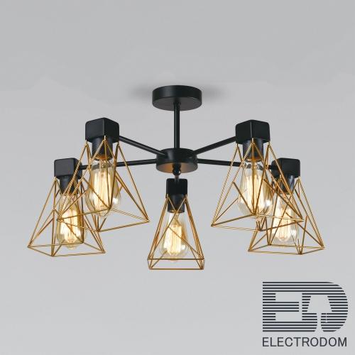Eurosvet Потолочная люстра в стиле лофт 70107/5 черный/латунь – стильный светильник, который крепится без использования подвесов и цепей. Конструкция хорошо подходит для комнат с низкими потолками. Например, офисов и кухонь.