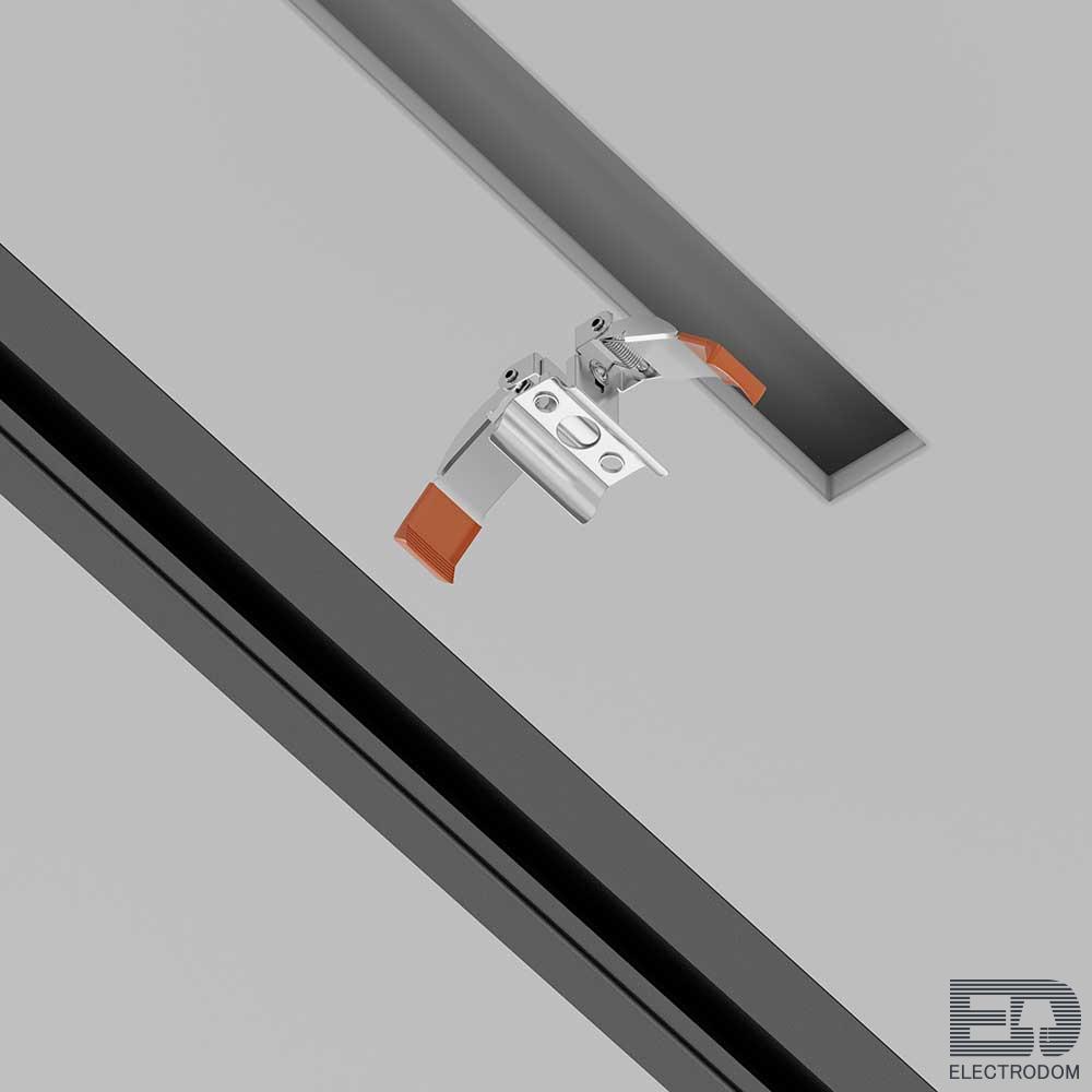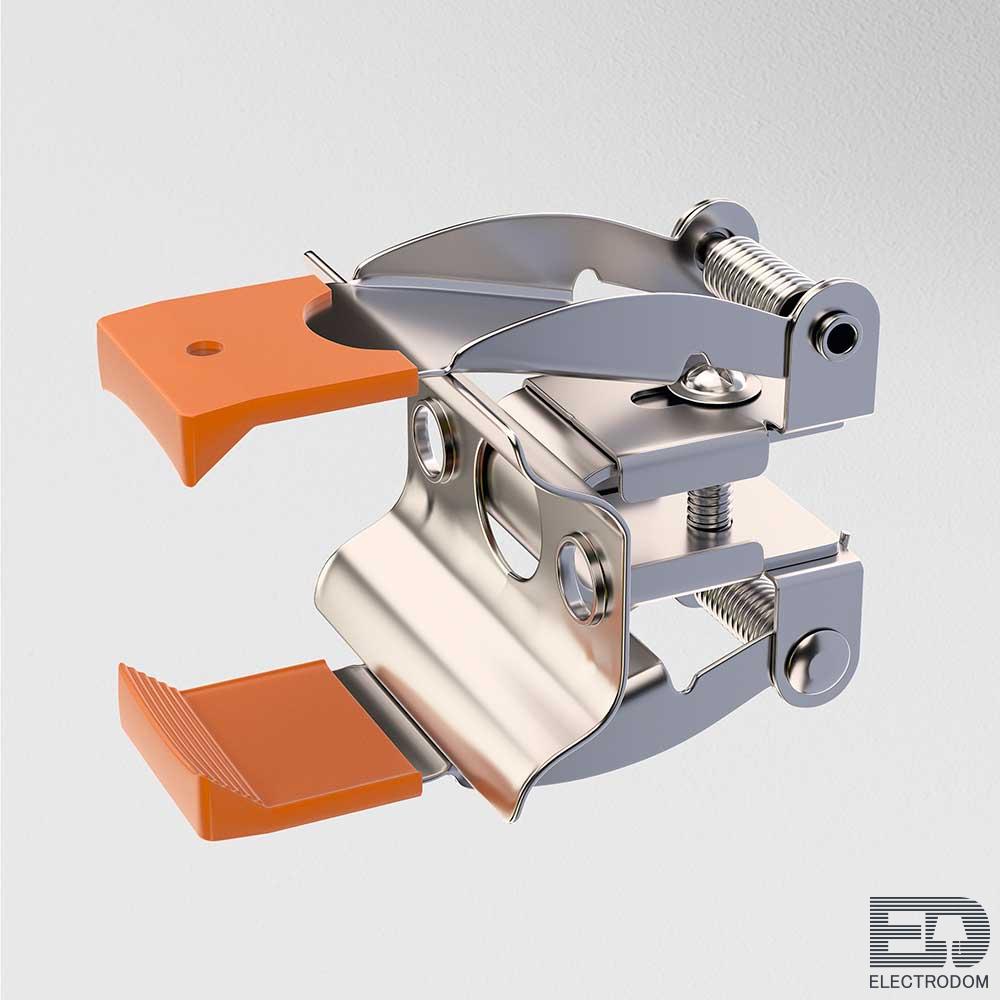 Пружинный держатель для встраиваемого однофазного трекового шинопровода. Обеспечивает легкий монтаж шинопровода в подготовленные отверстия без других средств фиксации.