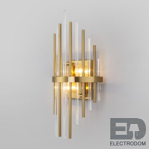 Eurosvet Настенный светильник 356/2 латунь – светильник из прочных металлических деталей и качественного стекла. Конструкция имеет универсальный дизайн, за счет чего преобразит комнату как в классическом, так и в стиле модерн. Eurosvet Настенный светильник 356/2 латунь хорошо смотрится на кухне, в гостиной или детской.