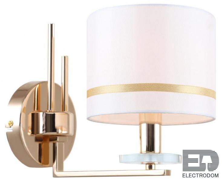 Светильник настенный 1045/03/01W Stilfort серии Chart выполнен в стиле модерн. Арматура изготовлена из окрашенного металла в цветовом исполнении "золото". Плафон из пвх, белого цвета с золотистым ободком.