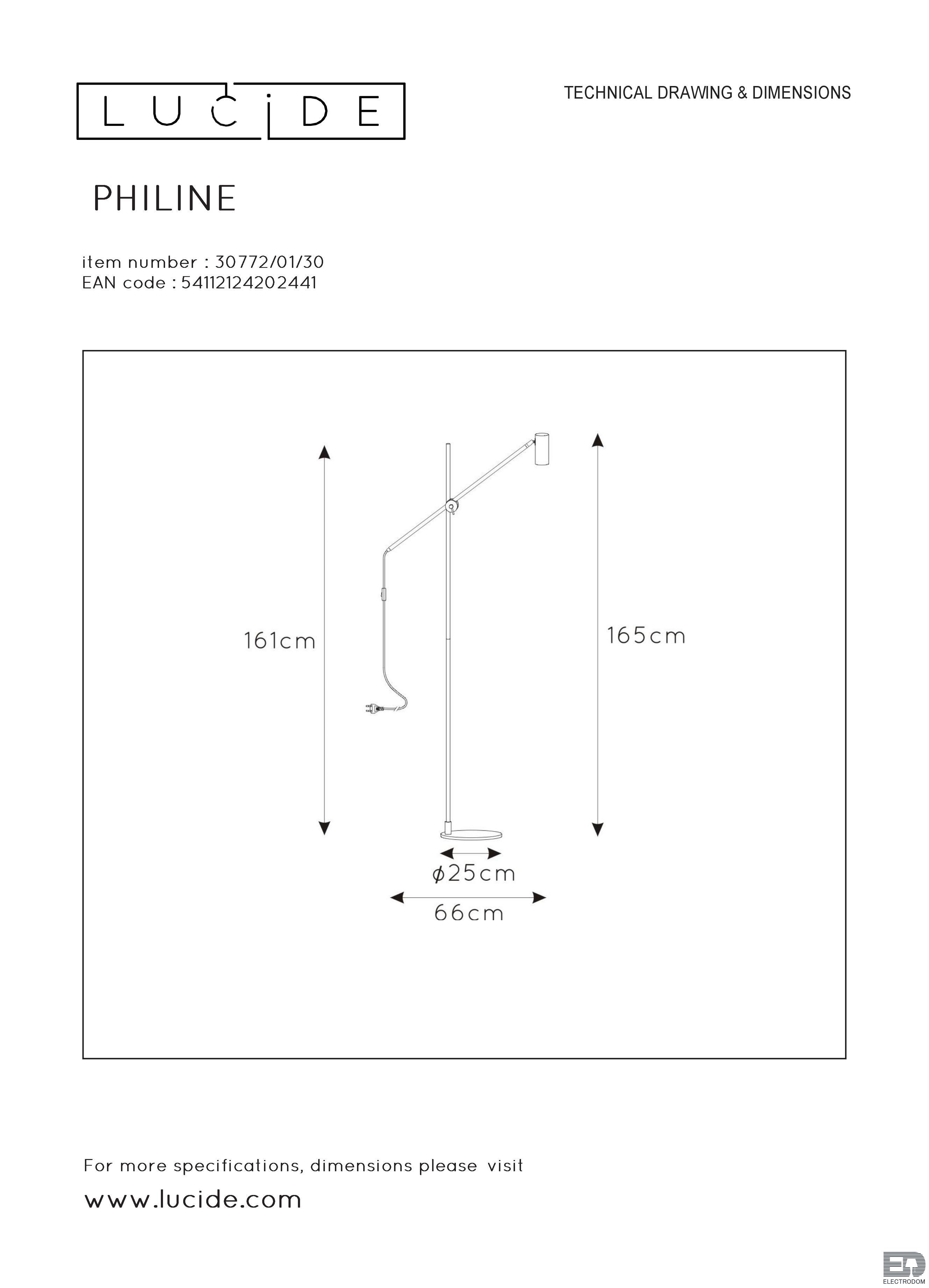 Торшер Lucide Philine 30772/01/30 – лаконичный и функциональный элемент декора, создающий уют и домашнюю атмосферу. Хорошо впишется в места, предназначенные для отдыха, чтения книг и душевных разговоров.